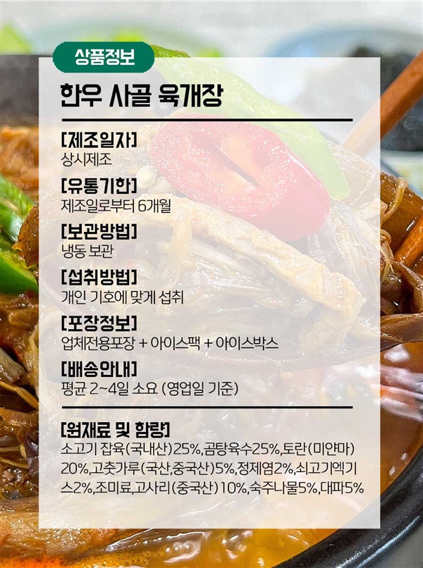 마음과 정성 그대로 담긴 한우 사골 육개장