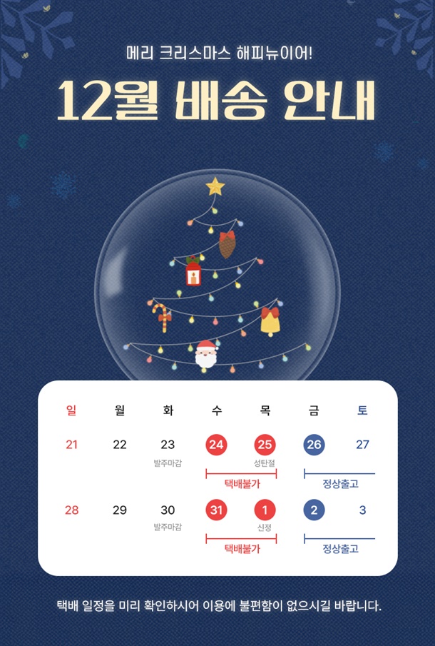 · 상품은 조기 배송될 수 있으며 배송일 지정은 불가합니다.