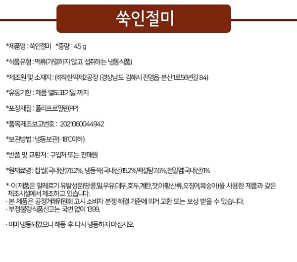 국내산 찹쌀이 제주해풍쑥이 듬뿍 들어간 쑥인절미