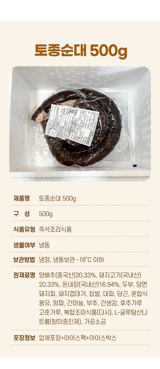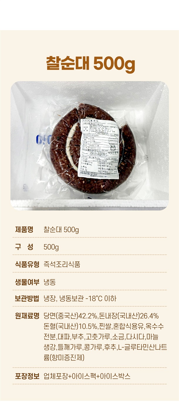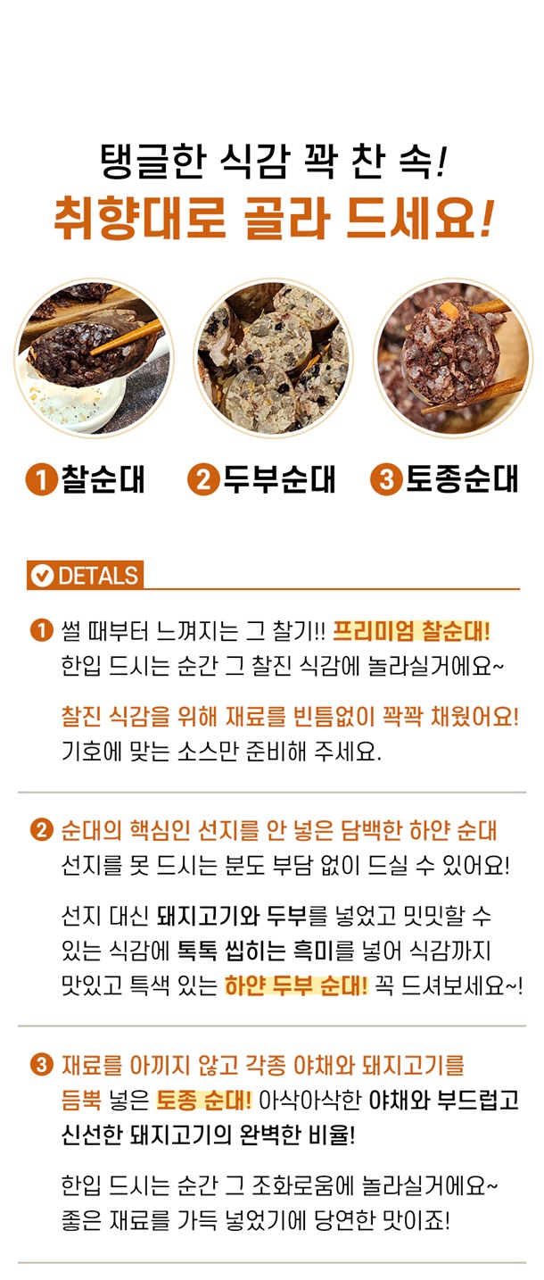 매일 산지에서 공수된 신선한 야채와 국내산 돼지고기로 만들어 맛있는 순대
