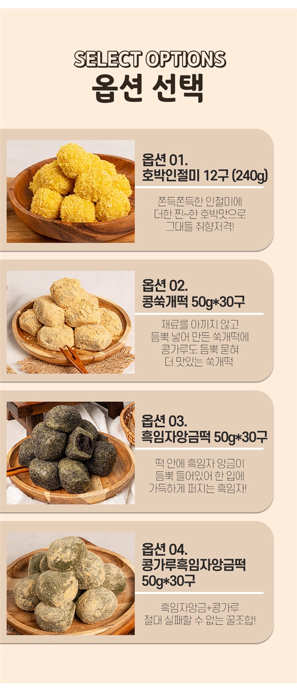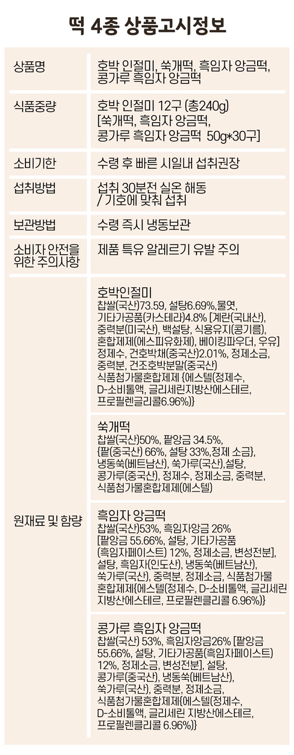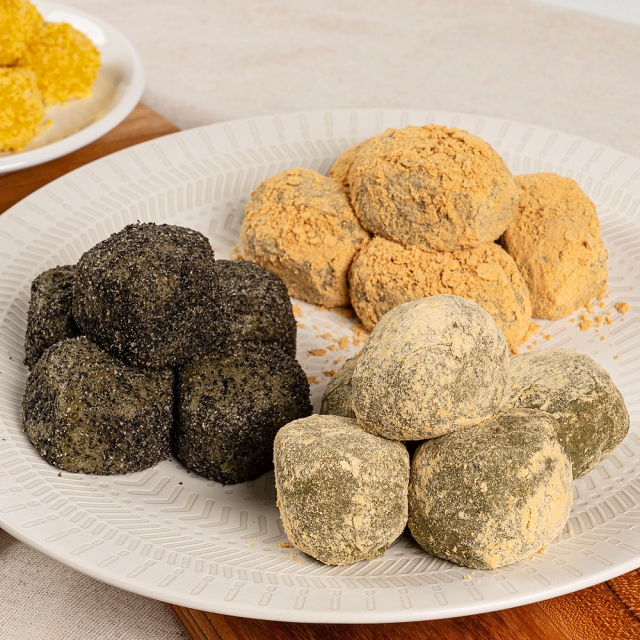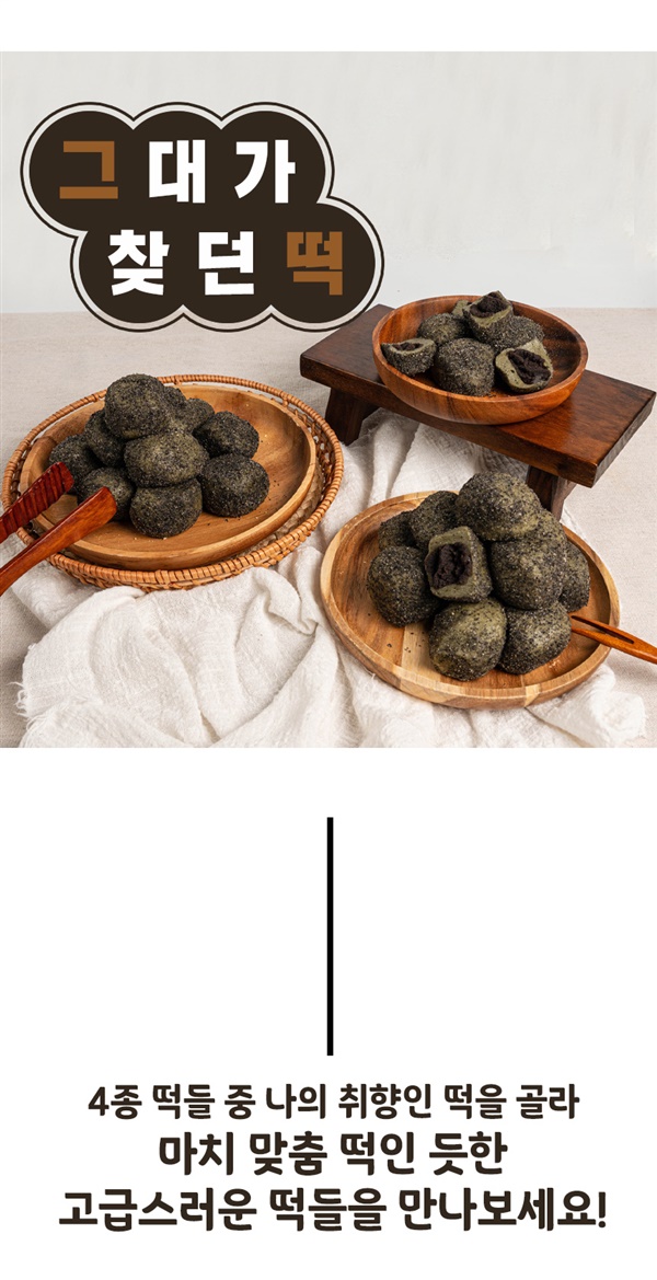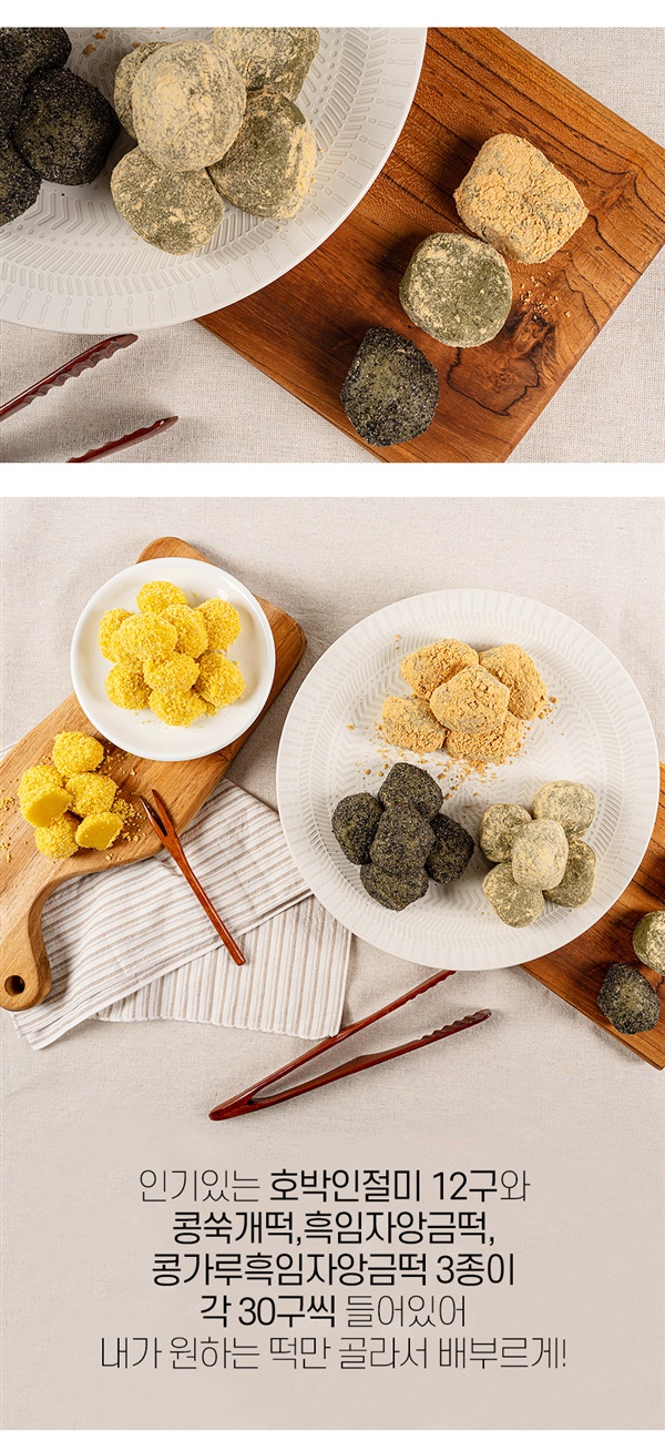 호박인절미, 콩쑥개떡, 흑임자앙금떡, 콩가루흑임자앙금떡 무려 4종!