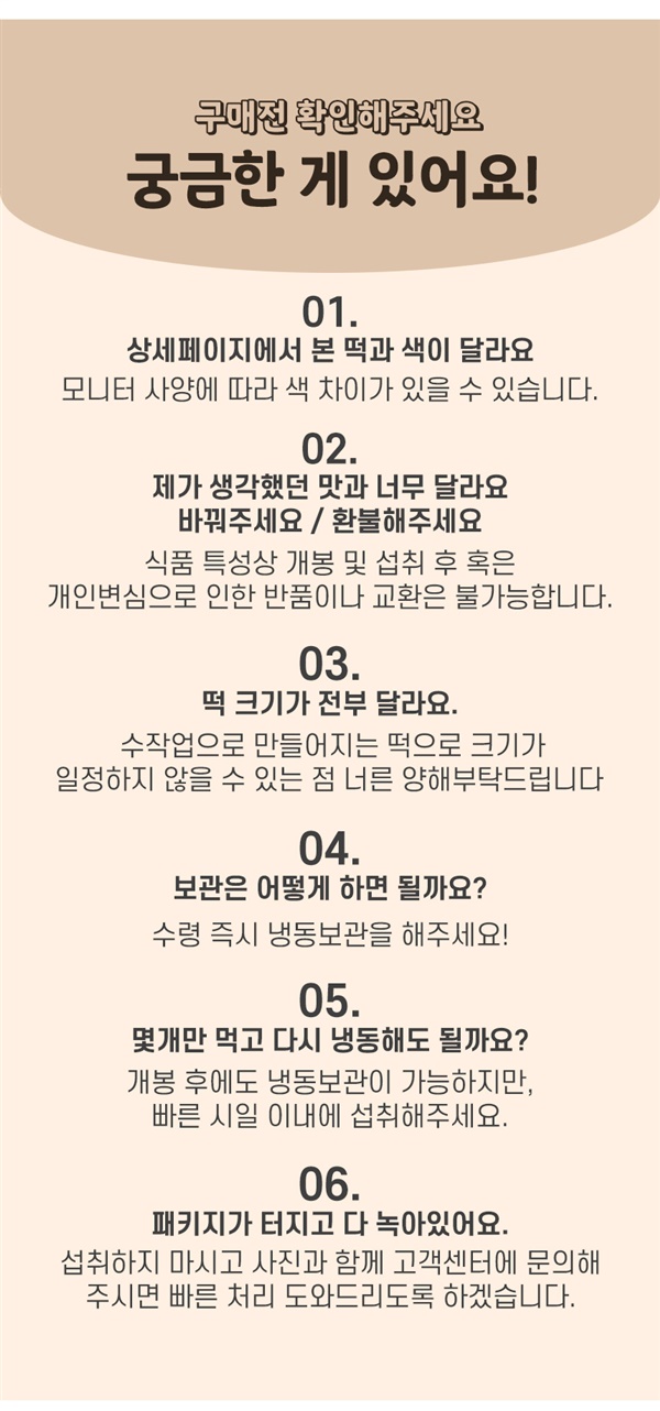 · 상품 불량 사유와 사진을 남겨 주시면 빠른 처리가 가능합니다.