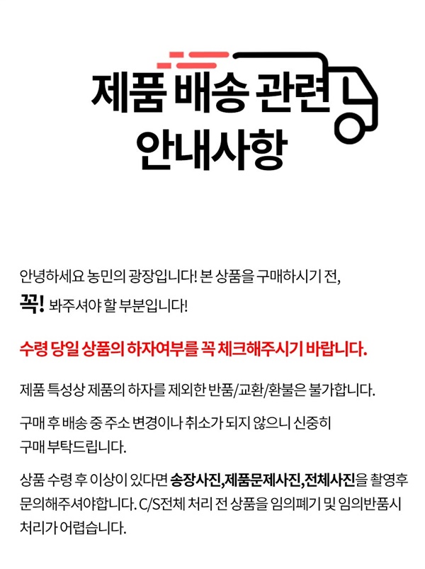 · 상품 불량 사유와 사진을 남겨 주시면 빠른 처리가 가능합니다.
