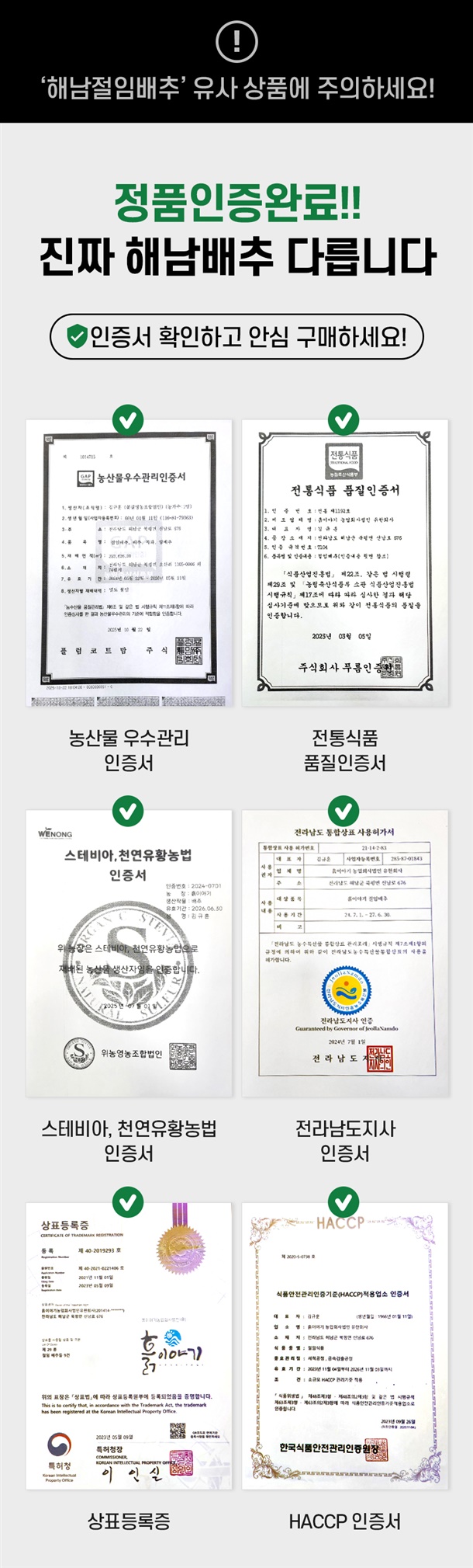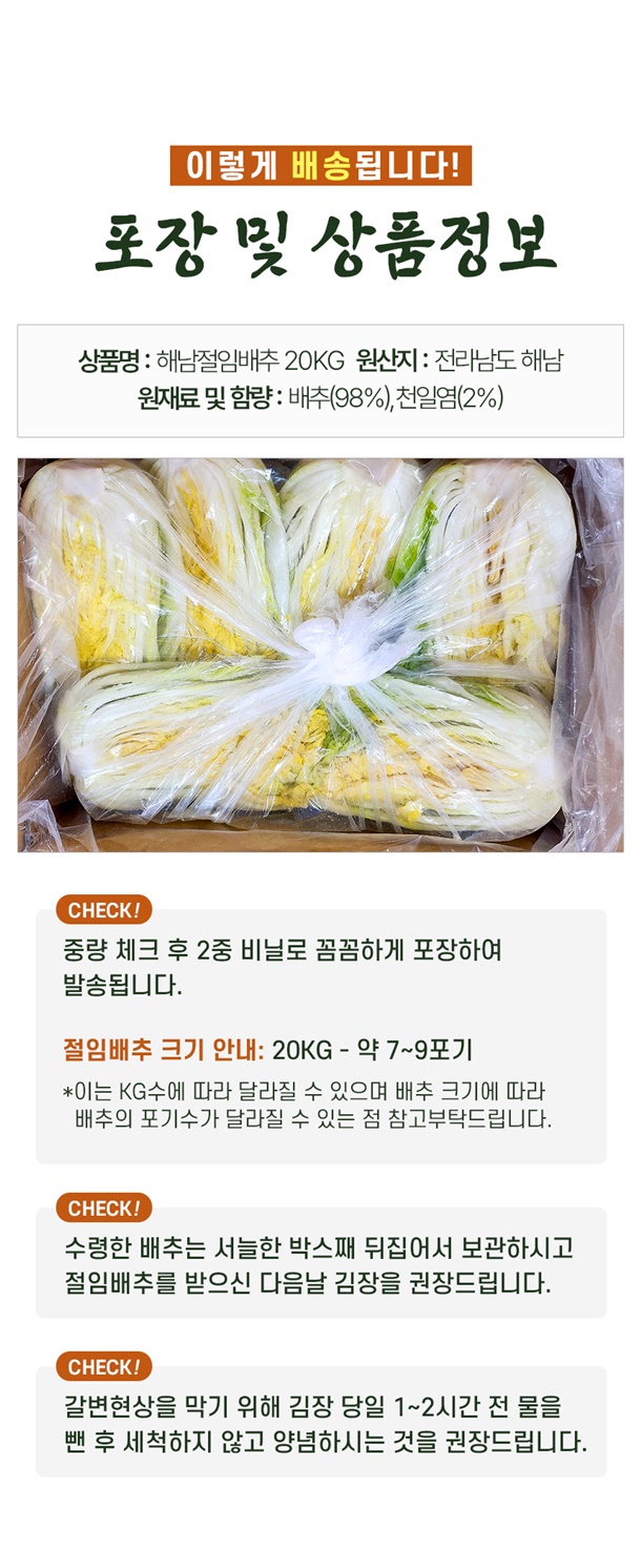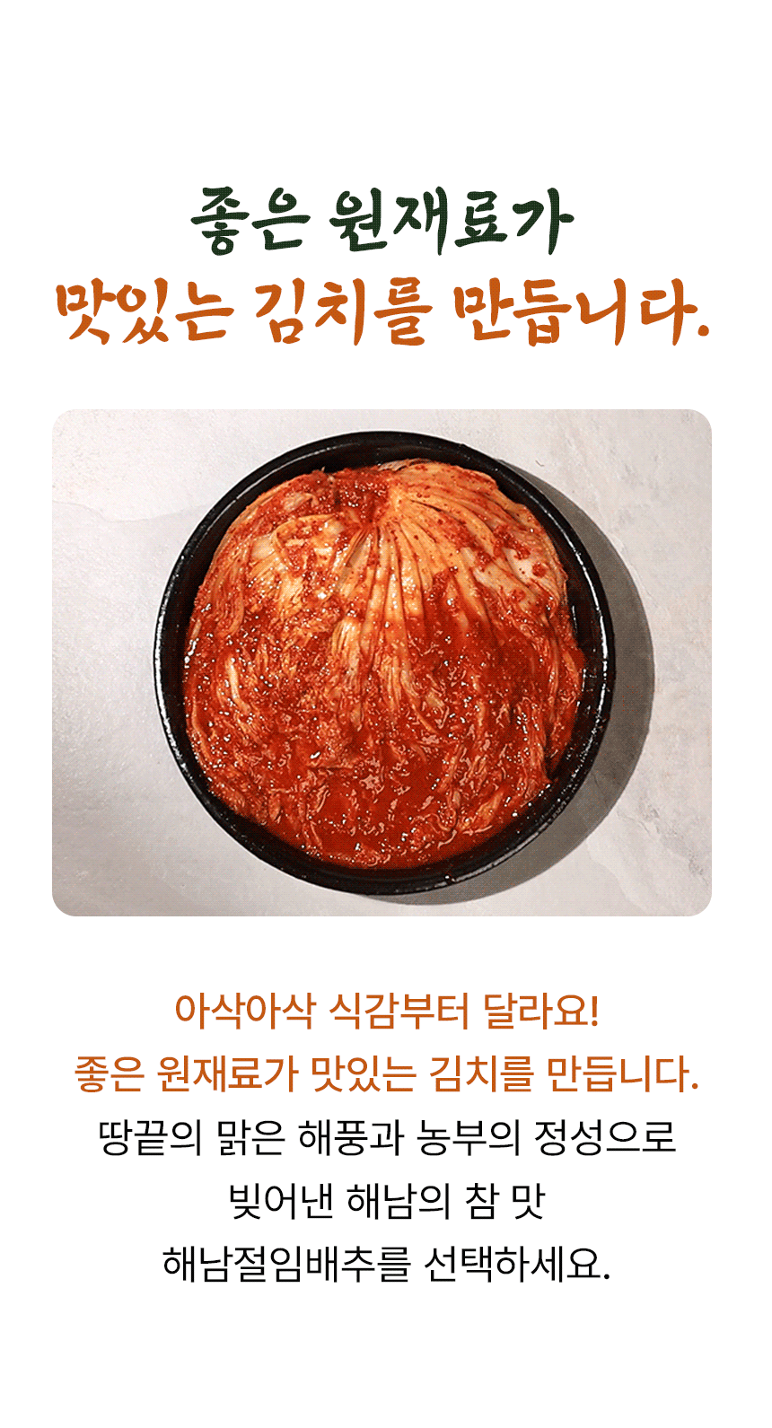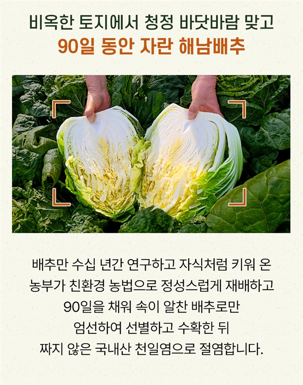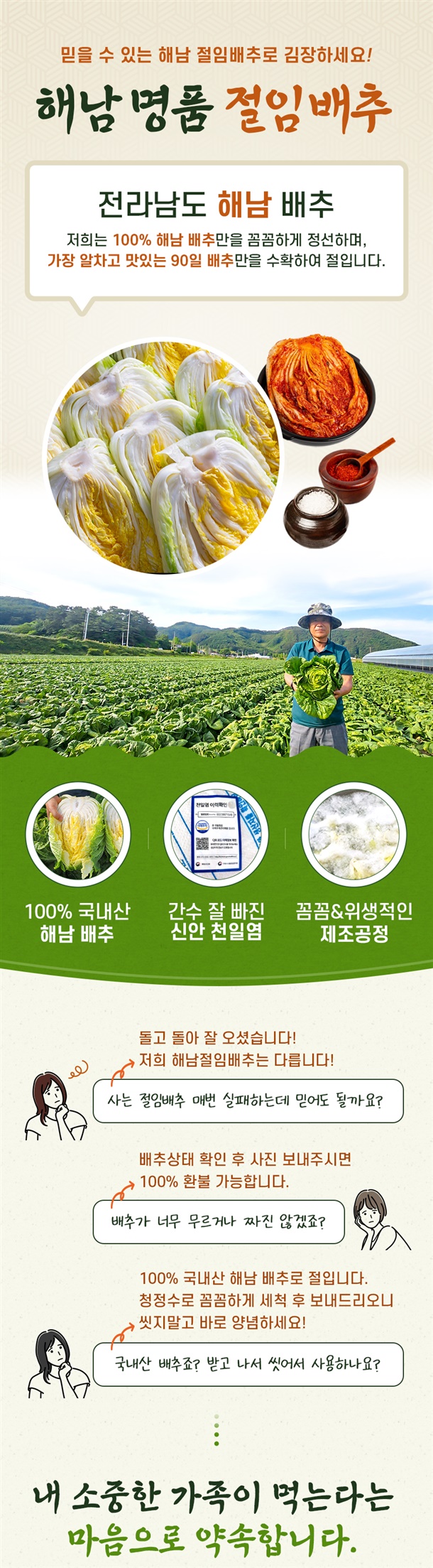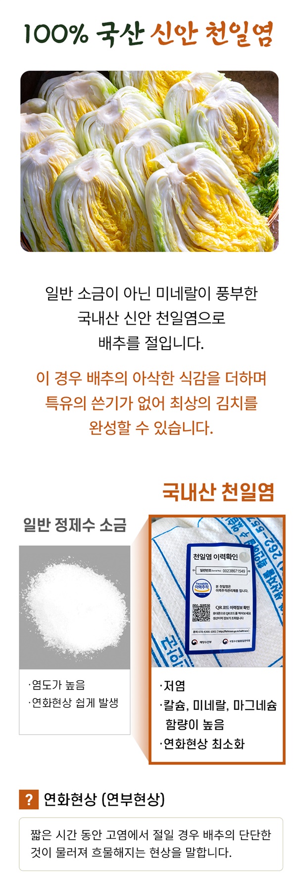 믿을 수 있는 100% 해남배추와 신안 천일염!